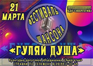 🎸21 марта в Культурно-досуговом объединении «Энергетик» состоится первый фестиваль шансона!