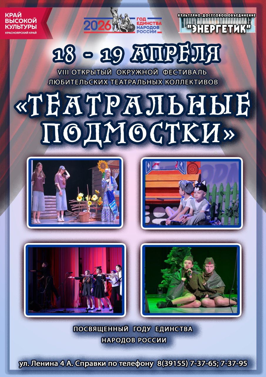 КДО «Энергетик» приглашает к участию в 8 открытом окружном фестивале любительских театральных коллективов «Театральные подмостки»!