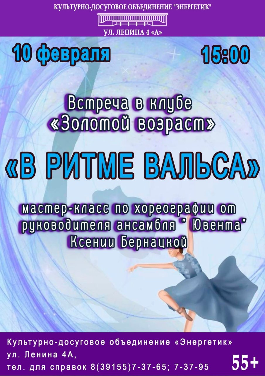 💥10 февраля в 15:00 КДО «Энергетик» распахивает двери для тех, кто молод душой, приглашая вас на встречу в клубе «Золотой возраст» под названием «В ритме вальса»!